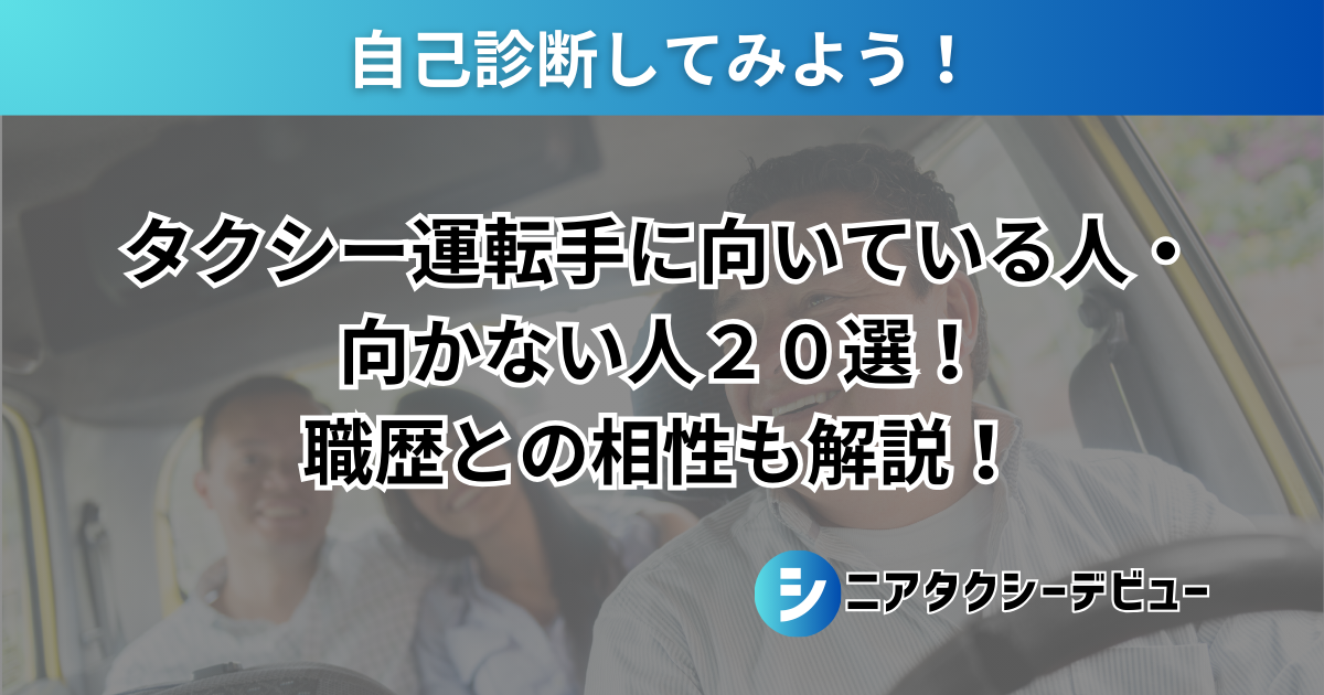 本記事では、タクシー運転手に向いている人の特徴、タクシー運転手に向かない人の特徴、タクシー運転手に向いている人の職歴などを見ていきましょう。
